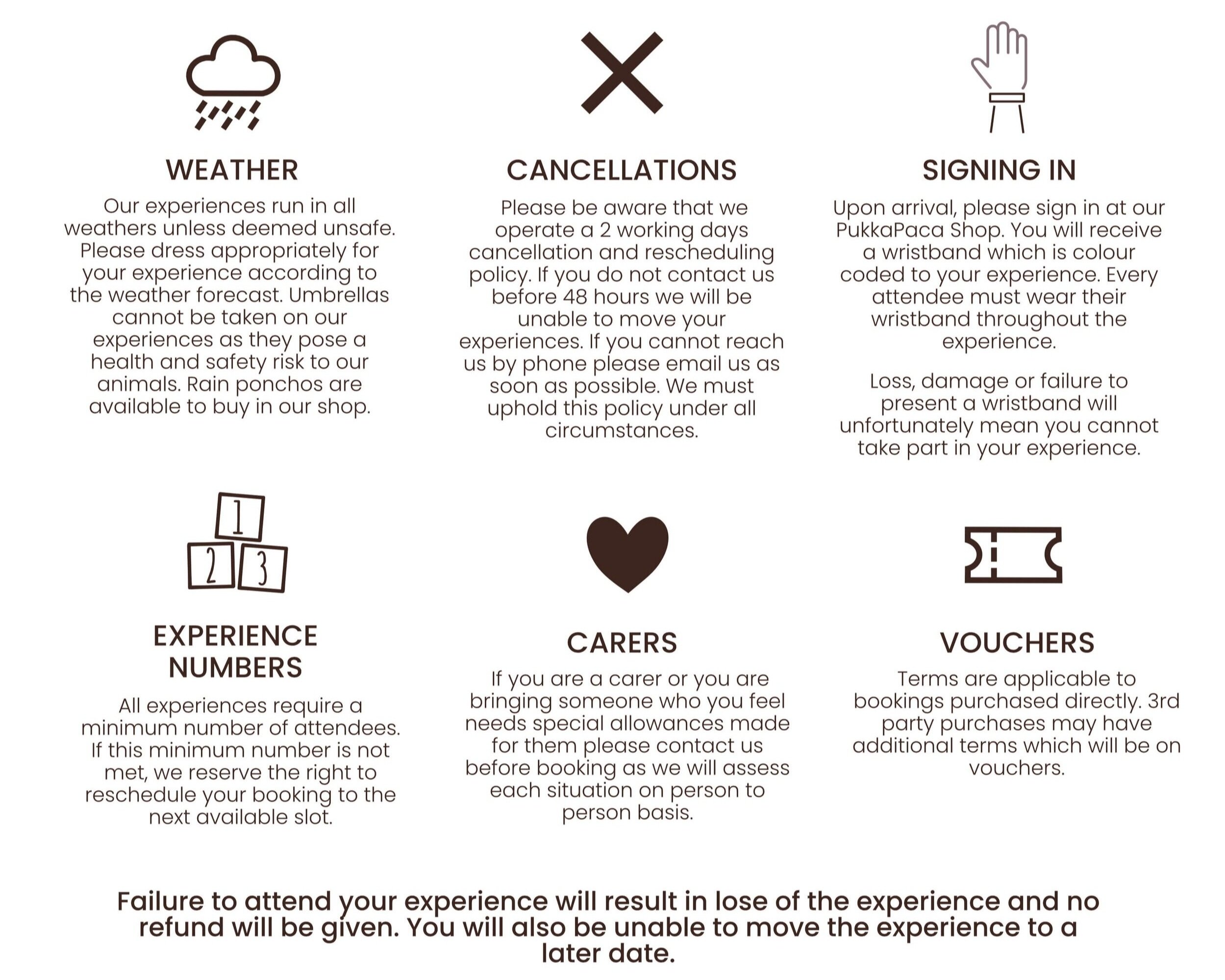All children must be supervised throughout the experience. When bringing very young children, we would advise bringing a sling or baby carrier, as we cannot authorise pushchairs on our experiences (see Accessibility section in the Terms & Conditions below).