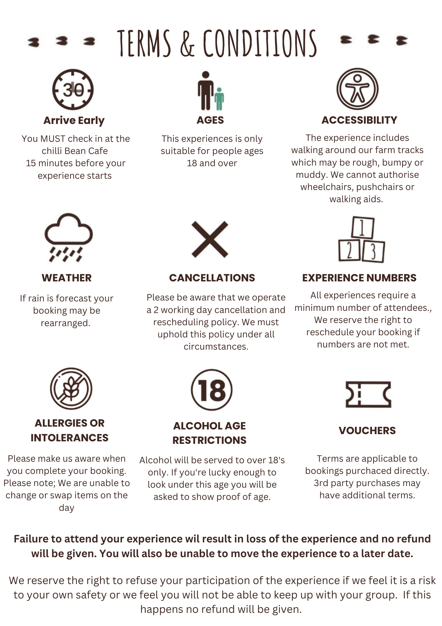 For cancellations outside of 48 hours a voucher will be issued and no refunds will be given. We must uphold this policy under all circumstances.
