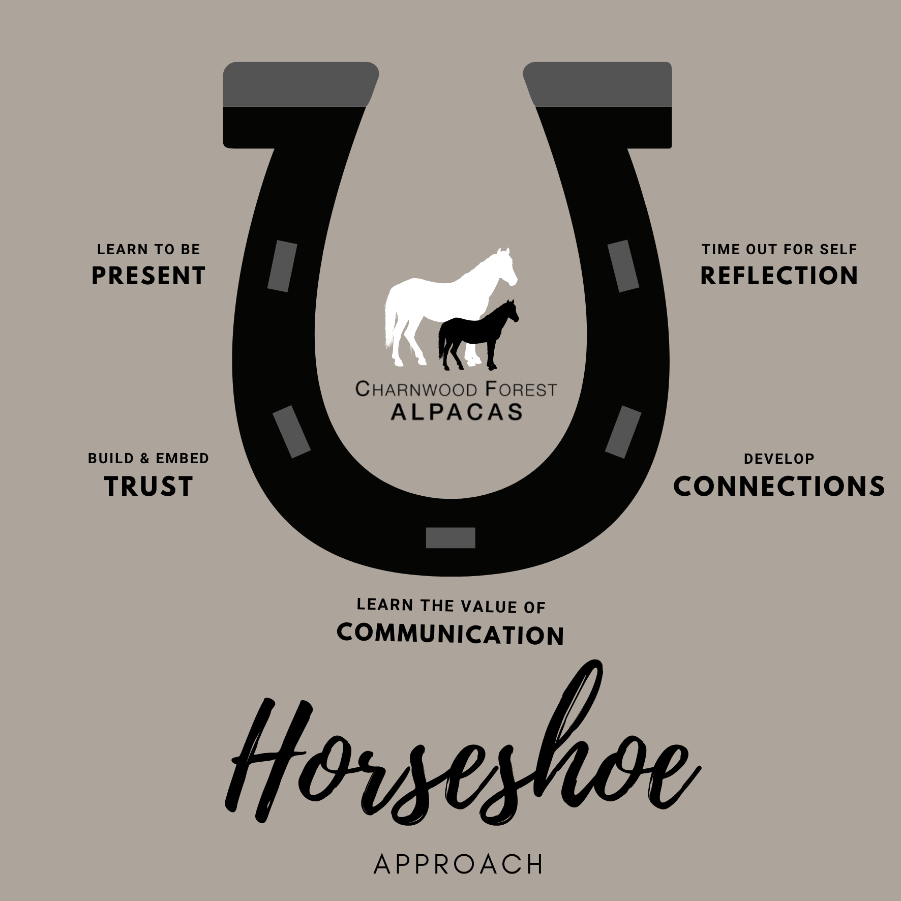 Here at Charnwood Forest Alpacas we have developed our very own learning system. This learning system has been created from known evidence based approaches such as the seven point star system. Our Horseshoe approach supports stimulated learning, develops self awareness and builds confidence.