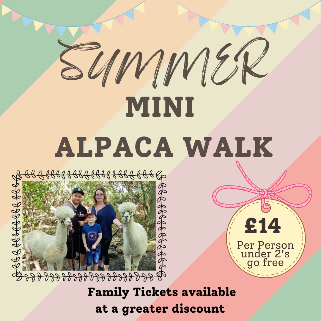 Love the idea of an Alpaca Walk, but don’t have the time for the full experience? Our mini Alpaca Walk is the perfect way to enjoy a gentle stroll with one of our fluffy friends - without the commitment of a longer walk.