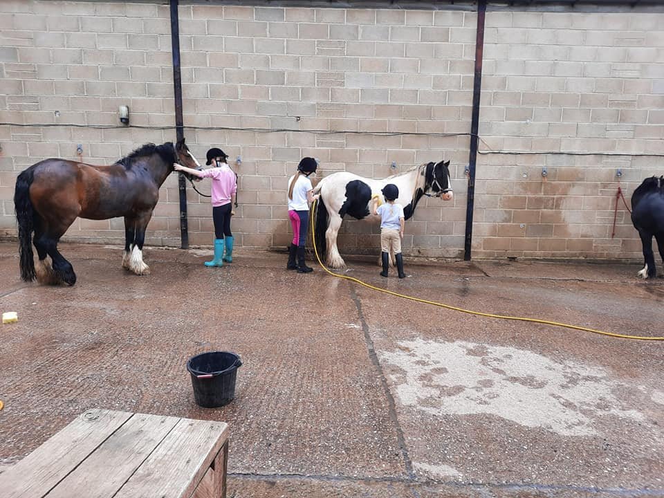 The day will cover all aspects of pony care: bringing in and turning out, grooming, tacking up, a 60 minute riding lesson, tack cleaning, mucking out, field checks and much more.