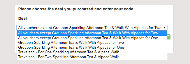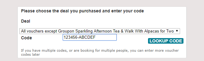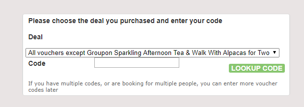 Enter your voucher details and click on "Look Up Code" (you will also need to enter your security code for Groupon voucher and a digit pin for a Travelzoo Voucher).